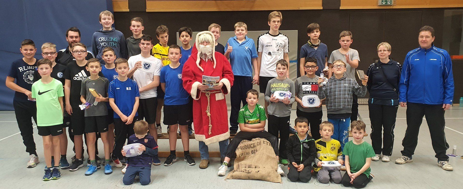 Beim alljährlichen Abschlusstraining des Tischtennisnachwuchses gab es für die Teilnehmer eine kleine Überraschung: der Nikolaus machte seine Aufwartung. Nach der Begutachtung der Trainingserfolge fand er für die anwesenden Schüler und Jugendlichen noch anerkennende und aufmunternde Worte. Besonders hob er den Faktor Spaß beim Training und den sportlichen Wettkämpfen hervor. Abschließend erhielt jeder noch ein kleines Geschenkpaket aus dem gefüllten Jutesack.