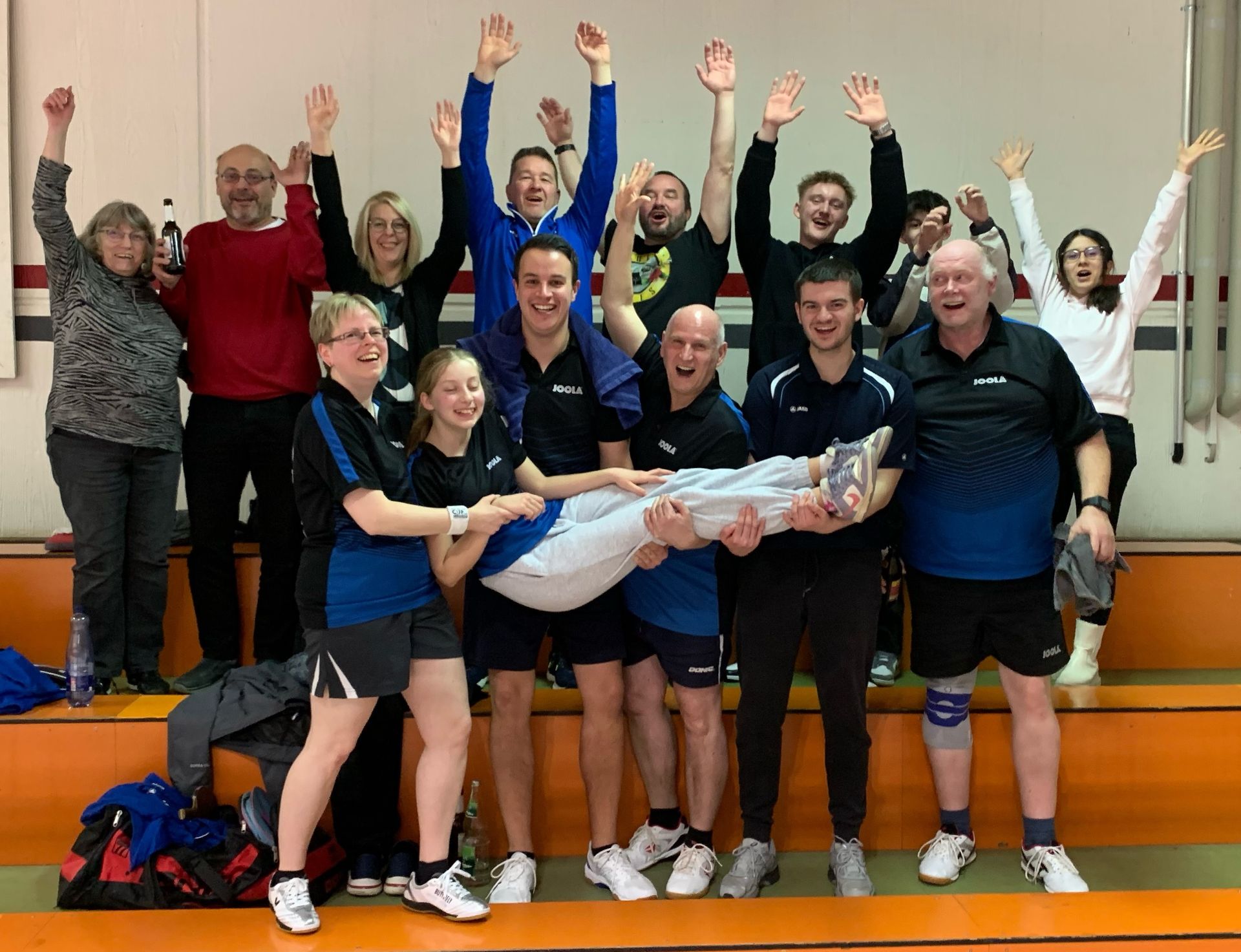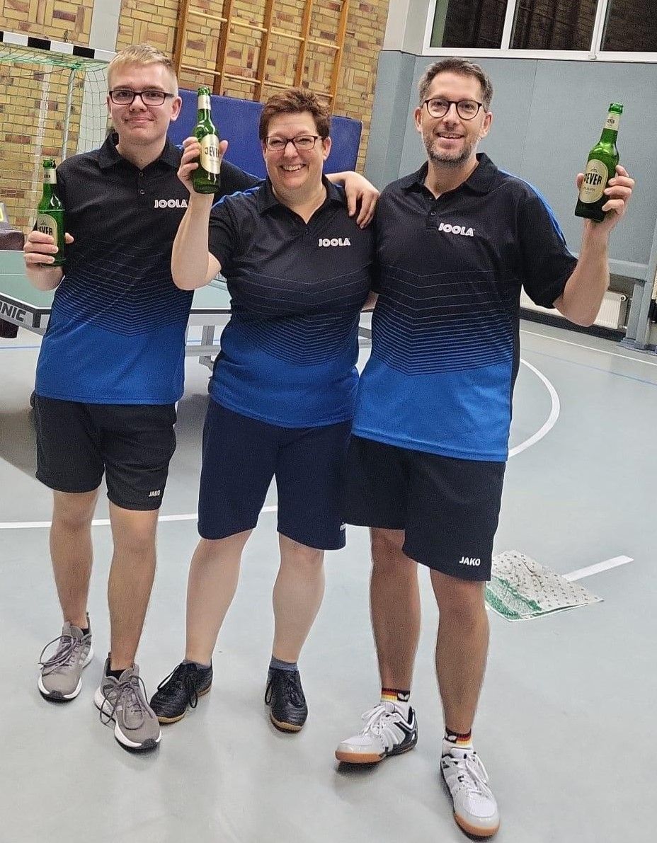 Folglich überglücklich und ausgelassen feierten Jürgen Heinze, Tobias Rotter, Lara Schelling (Einzelbilanz 5:0; TOP3), Harald Seyler, Nicole Schaper, Clemens Kopatz und Luke Reußwig (10:0; TOP1) ihren Erfolg. Desweiteren schaffte das Stammdoppel Kopatz / Seyler mit 8:0 eine makellose Bilanz. Die Mannschaft bedankt sich an dieser Stelle auch bei den vielen Ersatzspielern sowie der treuen Fangemeinde für die Unterstützung.