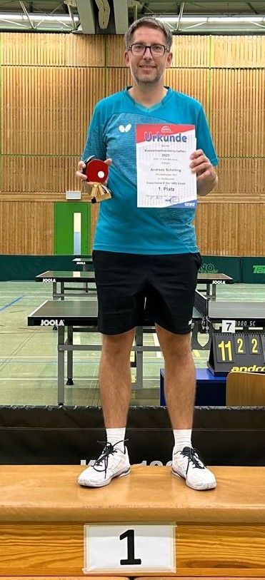 Der TV Lützelhausen hat mit Andreas Schelling einen frisch gebackenen Kreismeister in der Turnierklasse bis TTR 1400 in seinen Reihen. Der Trainingsfleiß unseres laufstarken Tischtennisspäteinsteigers zahlt sich aus.